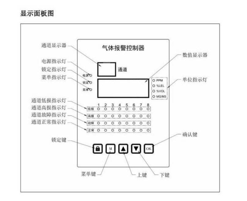 數(shù)碼管顯示,不同光線下清晰顯示濃度、單位、報警、故障等信息;